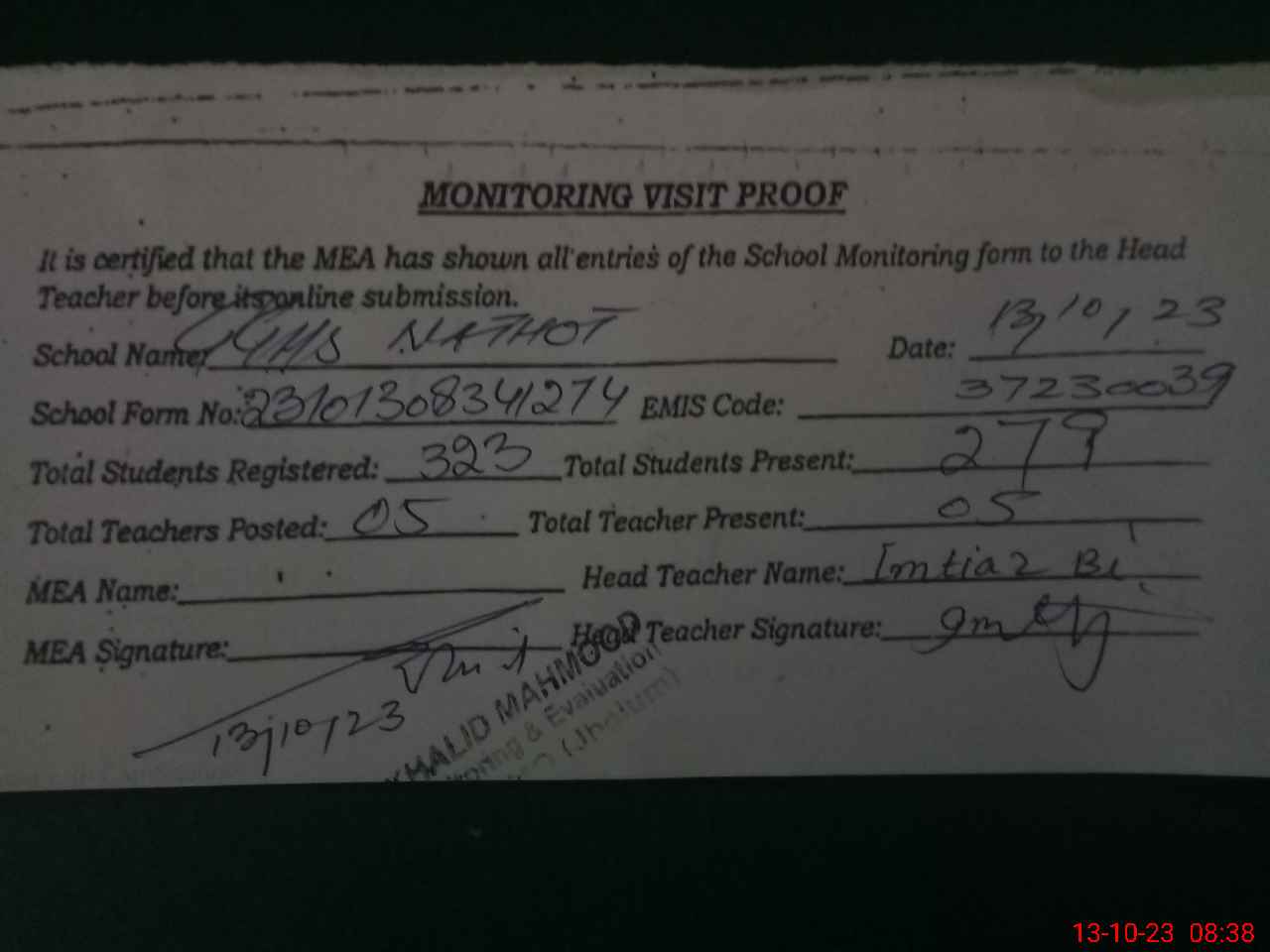| EMIS Code: 37230039 | Name of School: GGHS NATHOT | |||