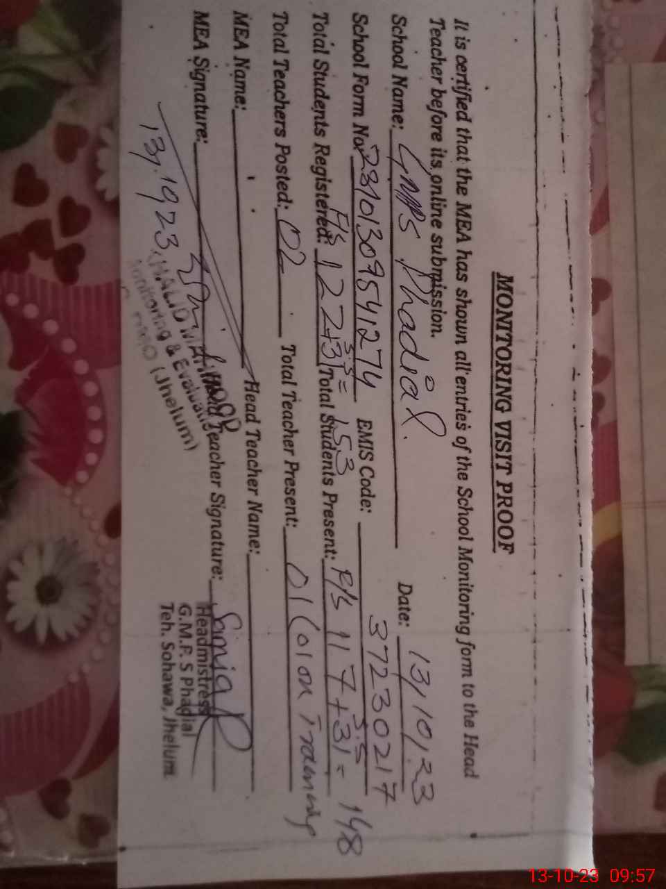 | EMIS Code: 37230217 | Name of School: GMPS PHADIAL | |||