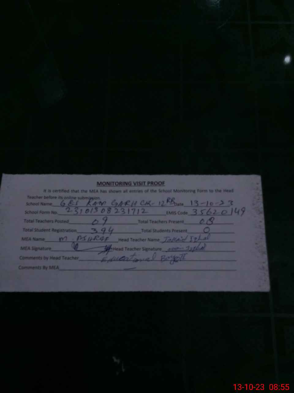 | EMIS Code: 35620149 | Name of School: GES RAM GARH 12/RB | |||