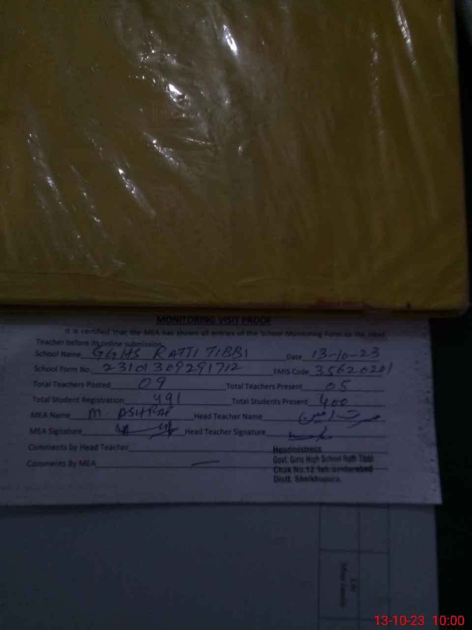 | EMIS Code: 35620201 | Name of School: GGHS RATTI TIBBI CHAK NO. 12/RB | |||