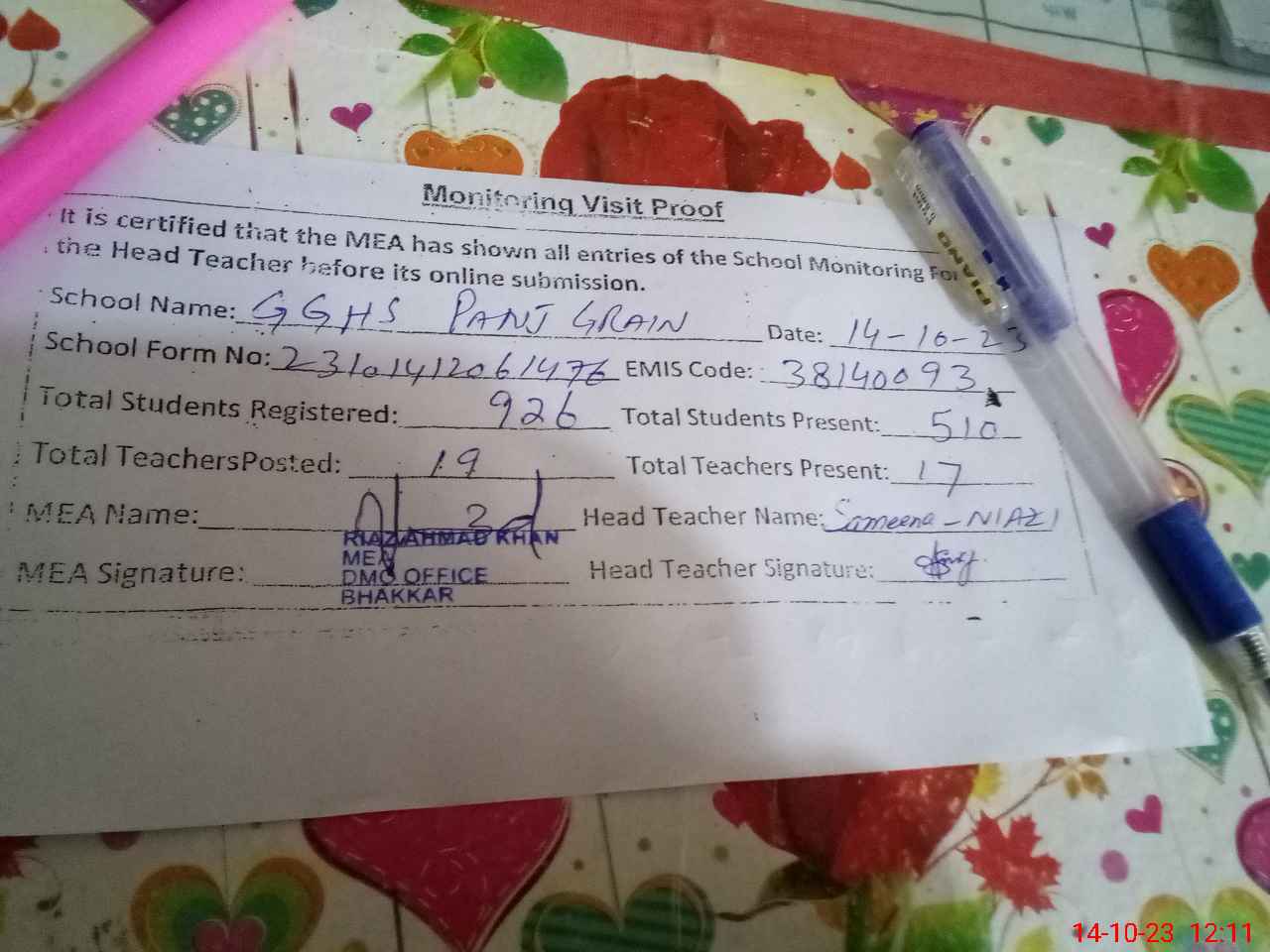 | EMIS Code: 38140093 | Name of School: GGHS PANJGRAIN | |||