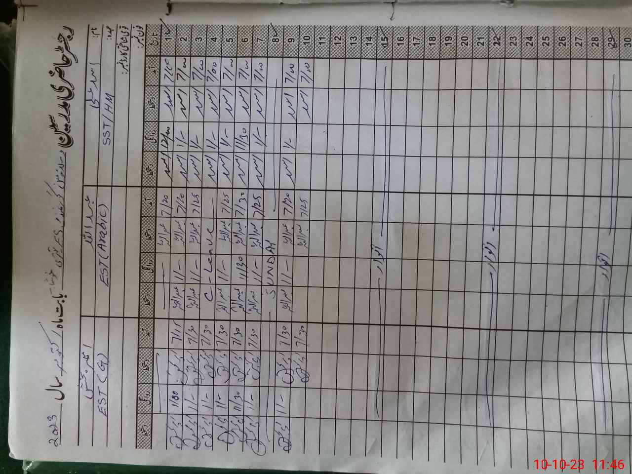 | CNIC | Full Name | Designation | R/C | Absence During Last Calender Month |