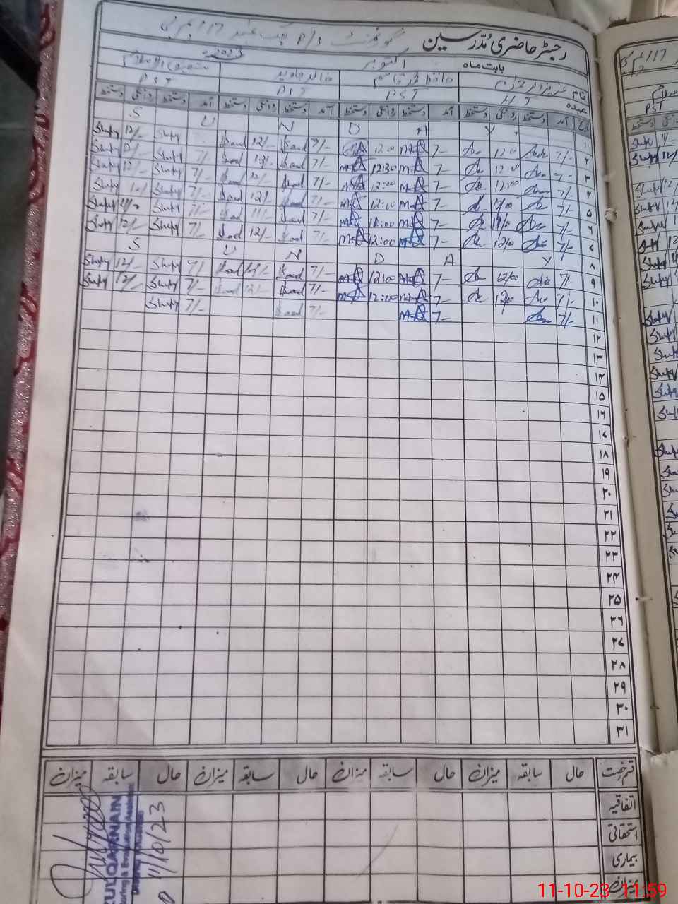 | CNIC | Full Name | Designation | R/C | Absence During Last Calender Month |