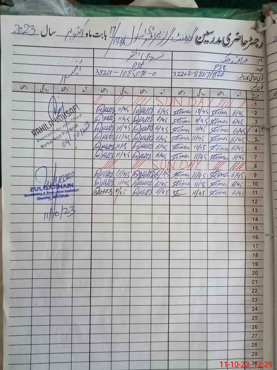 | CNIC | Full Name | Designation | R/C | Absence During Last Calender Month |