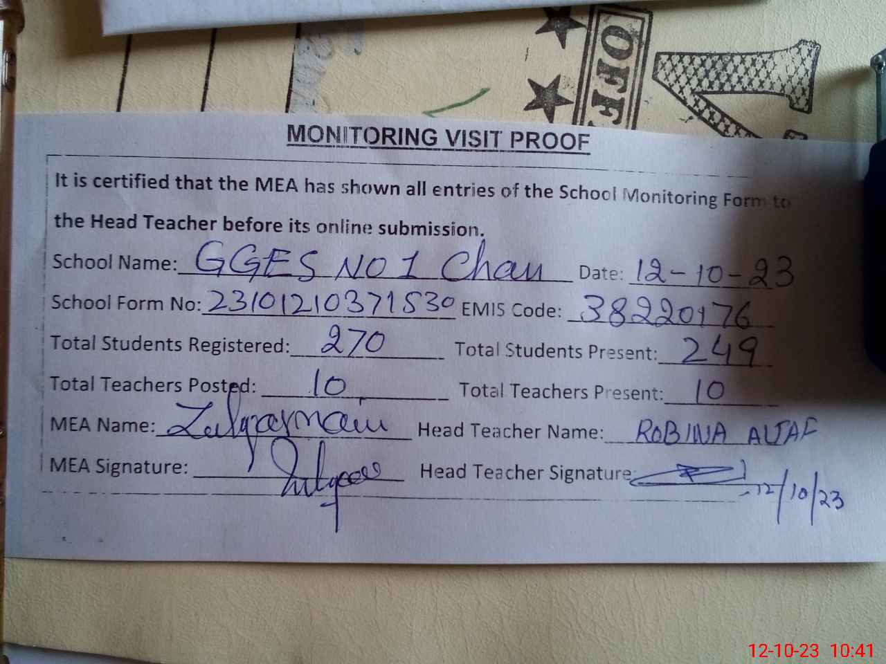 | EMIS Code: 38220176 | Name of School: GGES NO. 1 CHAN | |||