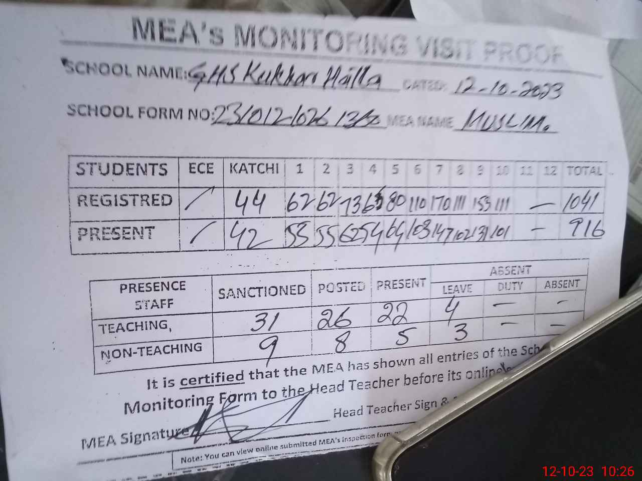 | EMIS Code: 36410026 | Name of School: GHSS KUKKAR HATTA, NAWAN SHEHR | |||