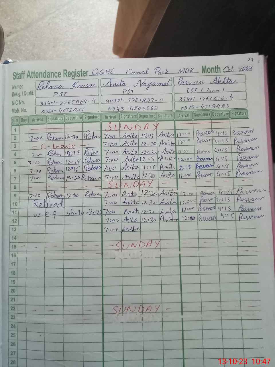 | EMIS Code: 35420088 | Name of School: GGHS CANAL PARK MURIDKE | |||