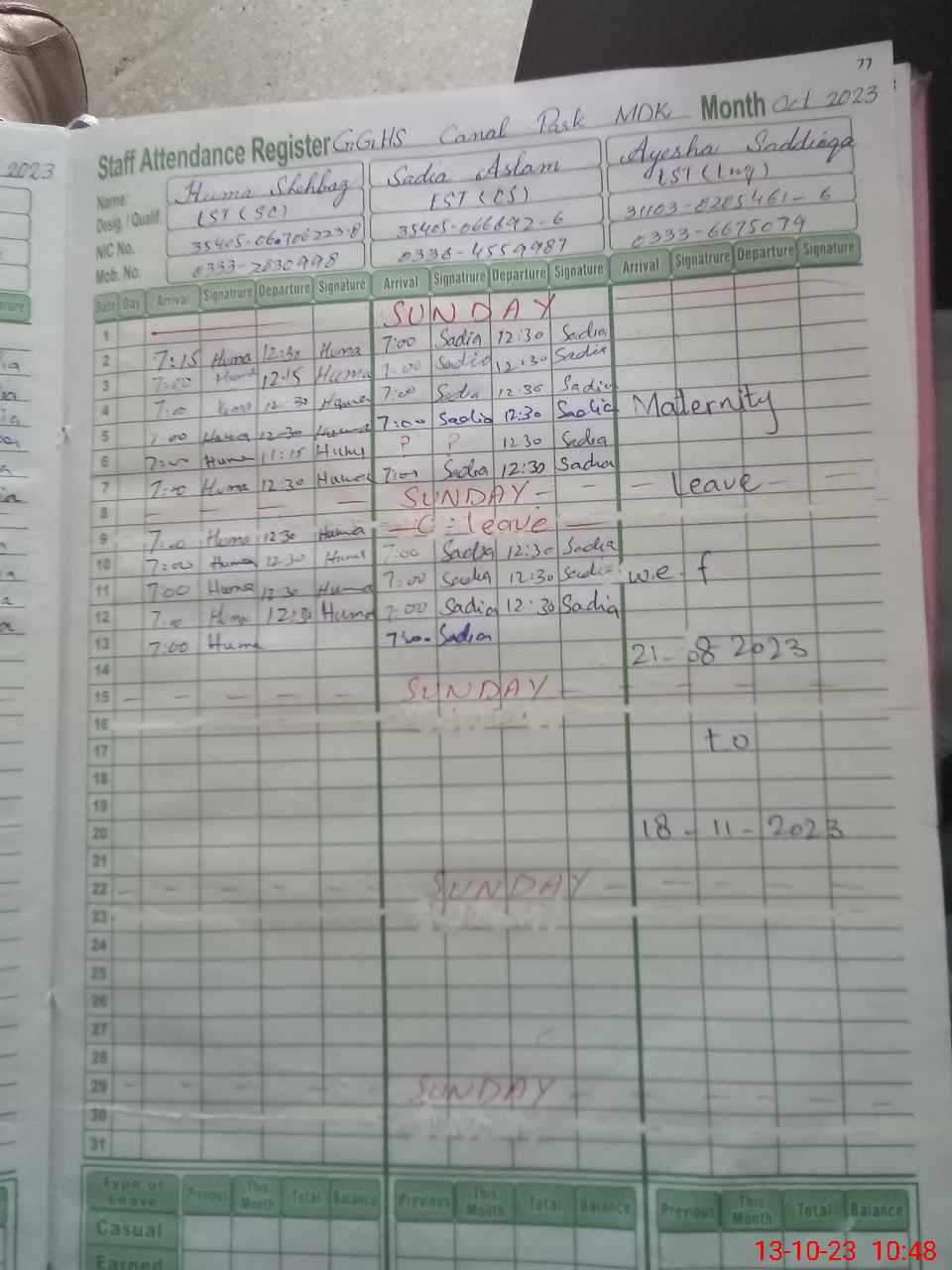 | 37**** | Fa**** Ra**** | 1 | 30 | 0 | 0 | 0 | 0 | 0 | 0 | 0 | 30 | Absent (Un-Authorized) | |