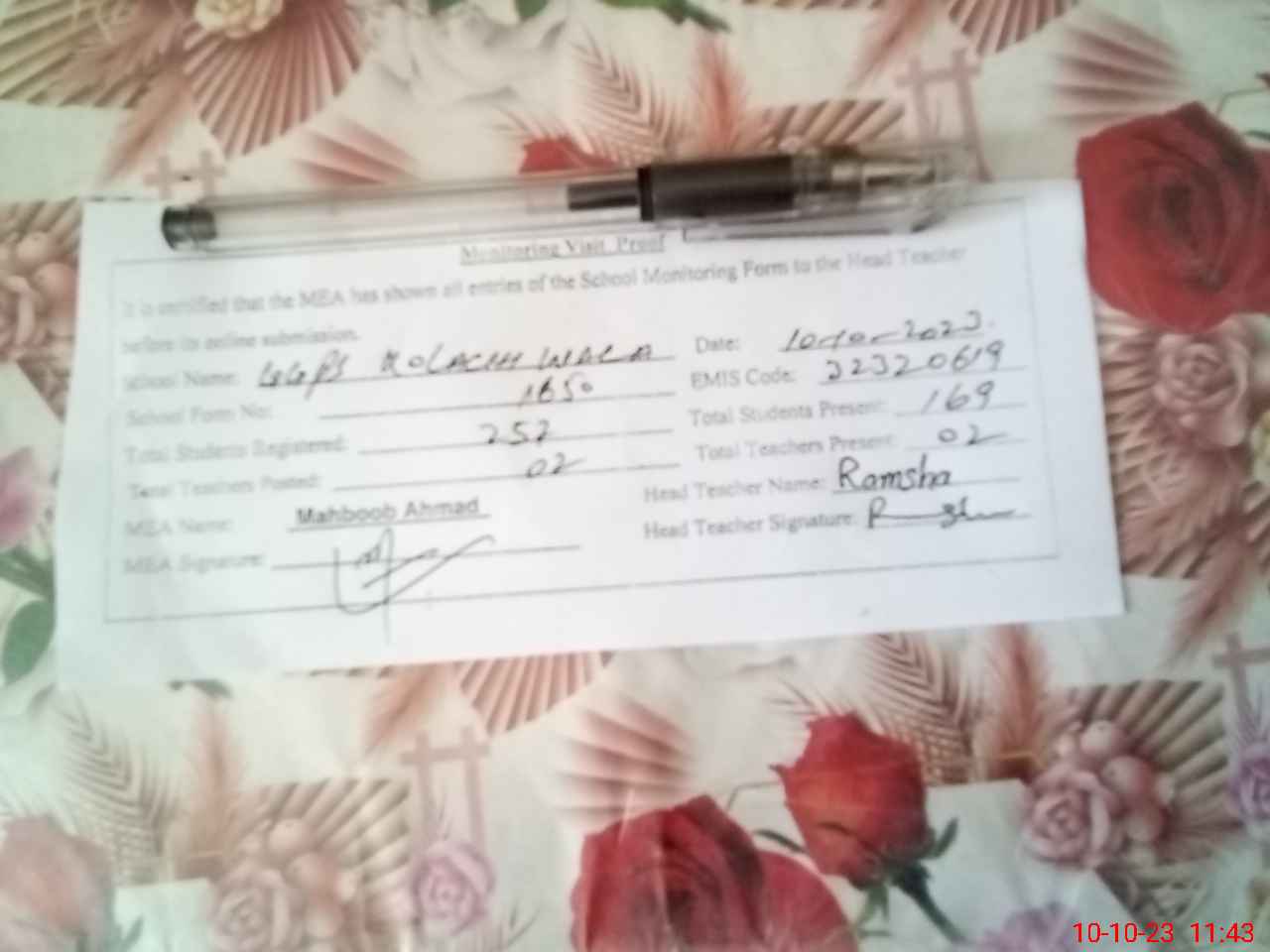 | EMIS Code: 32320619 | Name of School: GGPS KOLACHI WALA | |||