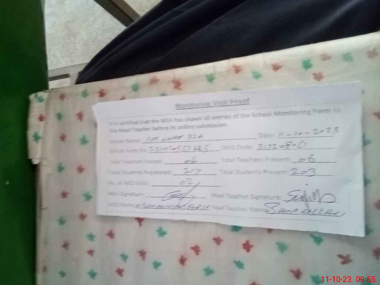 | Certified that this School was Inspected by the Undersigned MEA/DMO Today and the Information Stated Above is as Per Record. | |||||