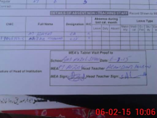 | Name: Fa**** Ab**** Designation: (School Headmaster's/Headmistress's) S Haed Phone/Cell Number: 03**** |