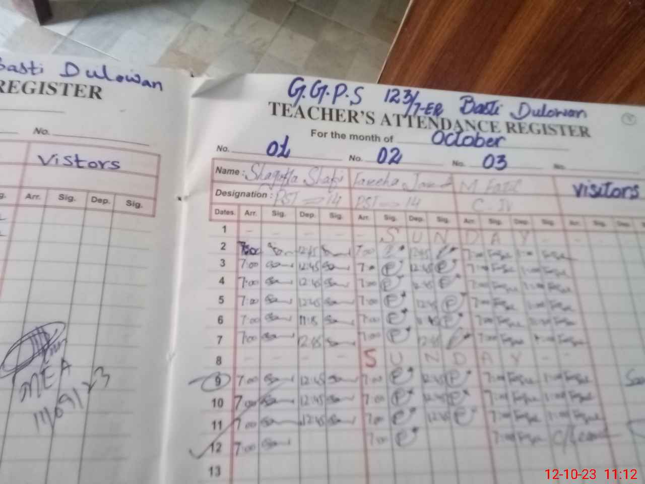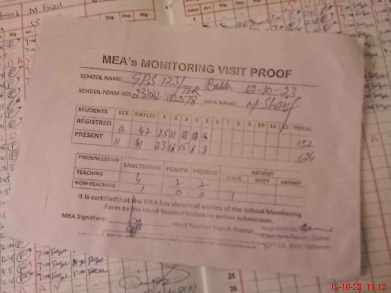 | Attendance Register | Head Teacher | MEA with School | Visit Proof |