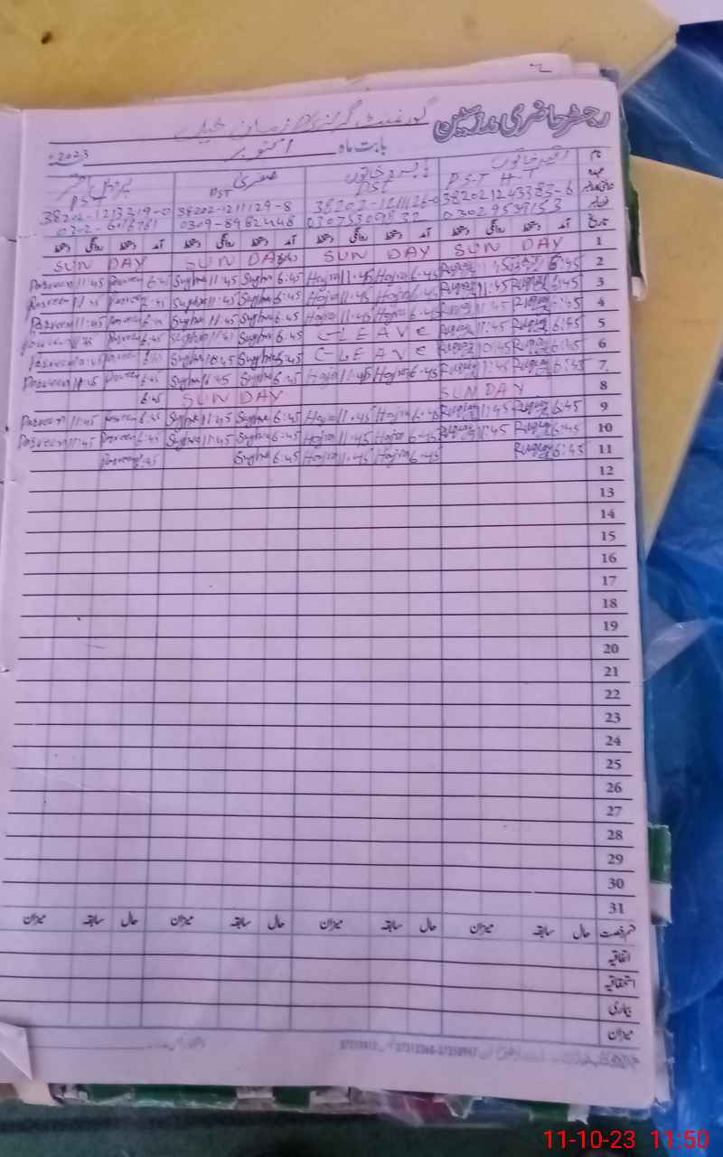 | CNIC | Full Name | Designation | R/C | Absence During Last Calender Month |