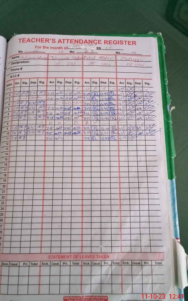 | Name: Ha**** Na**** Designation: (School Headmaster's/Headmistress's) S.S.T.(GEN) Phone/Cell Number: 03**** |