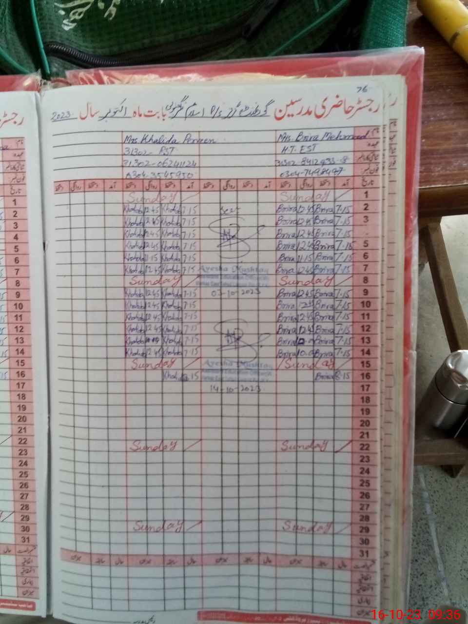 | Monitoring Date: 16-10-2023 | Start Time: 16-10-2023 09:30 AM | End Time: 16-10-2023 09:51 AM | Name of MEA: Mu**** Sa**** Ul**** Sa**** | |