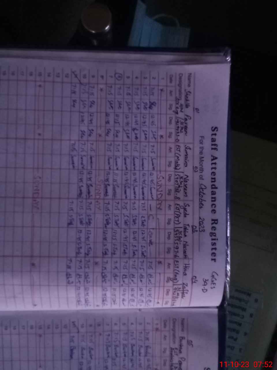 | CNIC | Full Name | Designation | R/C | Absence During Last Calender Month |
