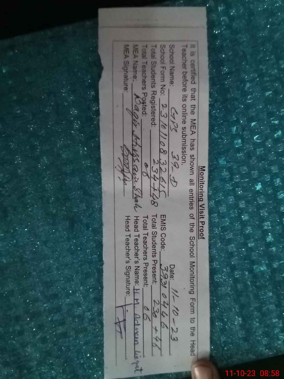 | EMIS Code: 39310446 | Name of School: GPS CHAK NO.39 D | |||