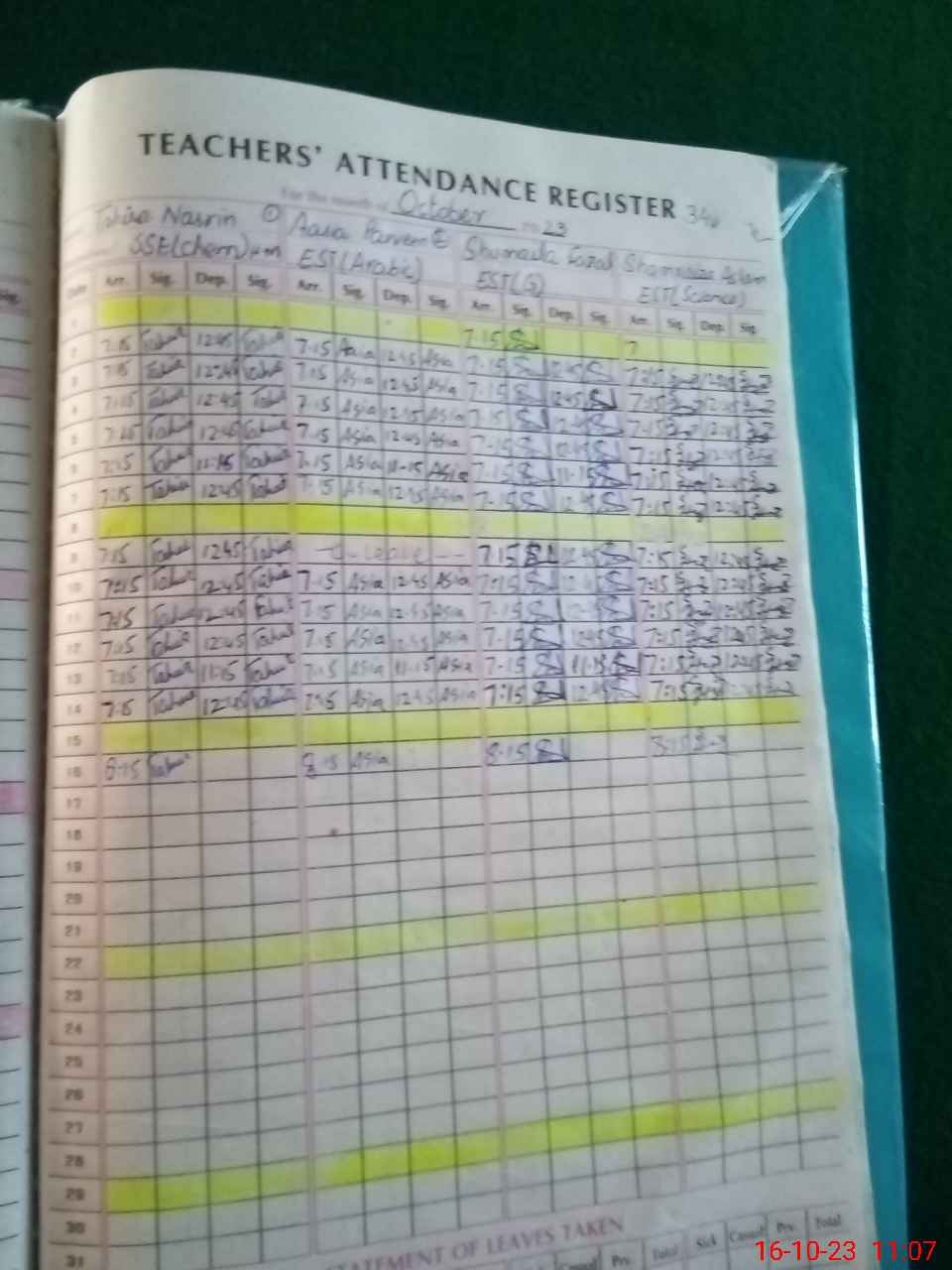 | CNIC | Full Name | Designation | R/C | Absence During Last Calender Month |
