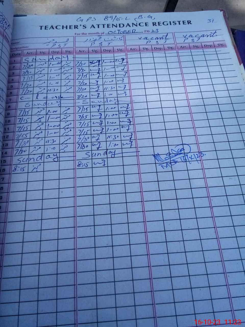 | Name: KA**** GU**** Designation: (School Headmaster's/Headmistress's) PST Phone/Cell Number: 03**** |