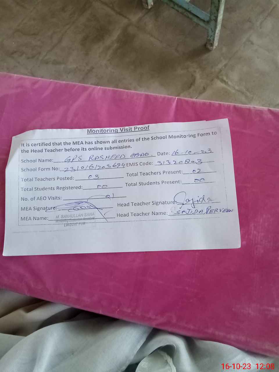 | EMIS Code: 31320803 | Name of School: GPS RASHID ABAD | |||