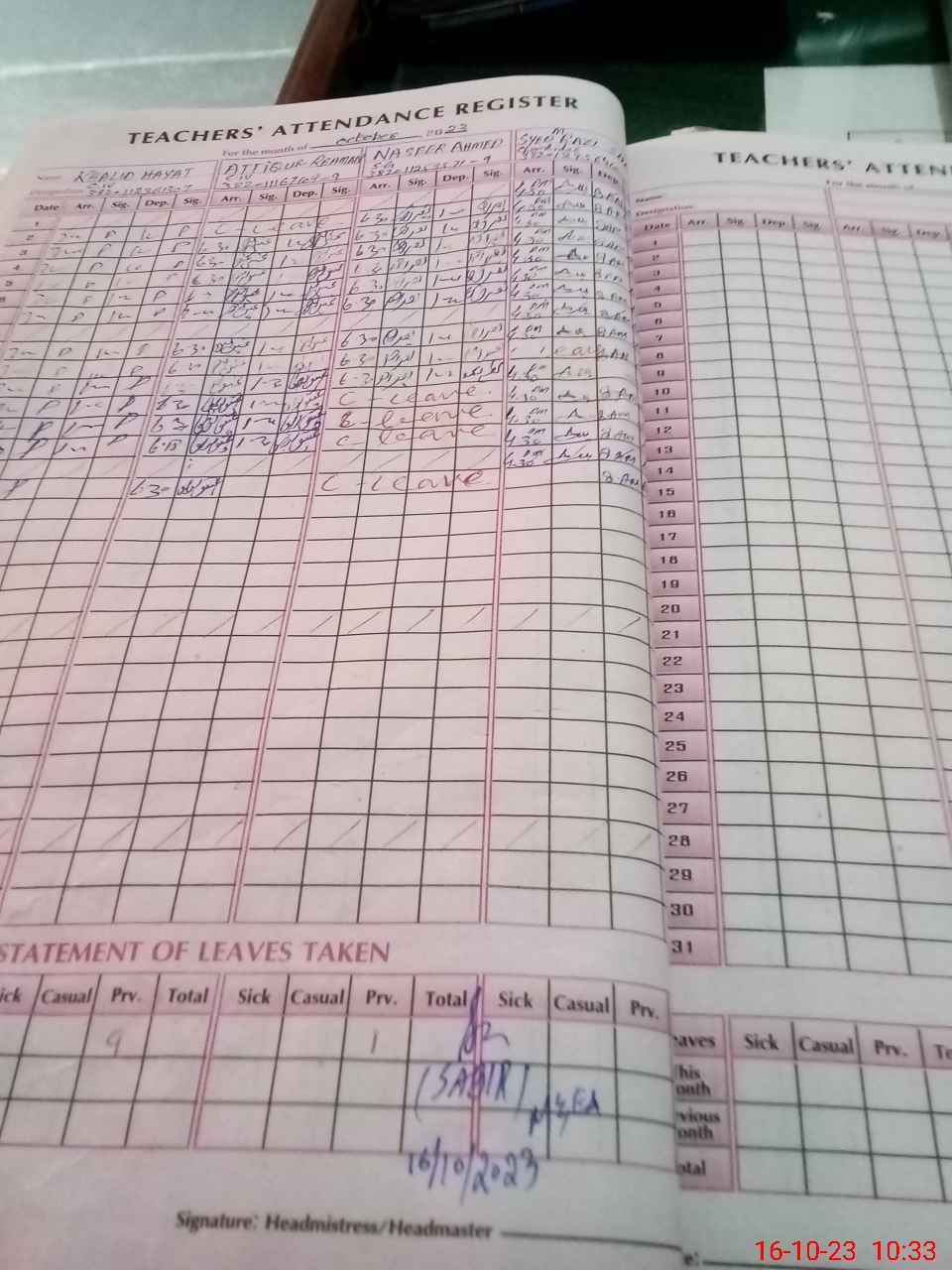 | 61**** | Qu**** UlAy**** Ha**** | 1 | 1 | 0 | 0 | 0 | 0 | 0 | 0 | 0 | 0 | 0 | Absent (Un-Authorized) |
