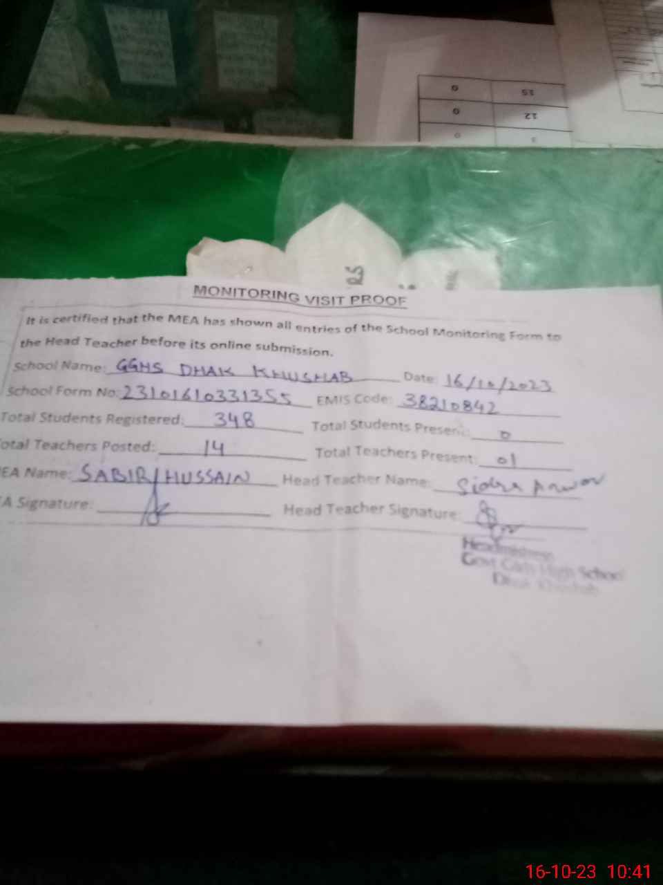 | EMIS Code: 38210842 | Name of School: GGHS DHAK KHUSHAB | |||