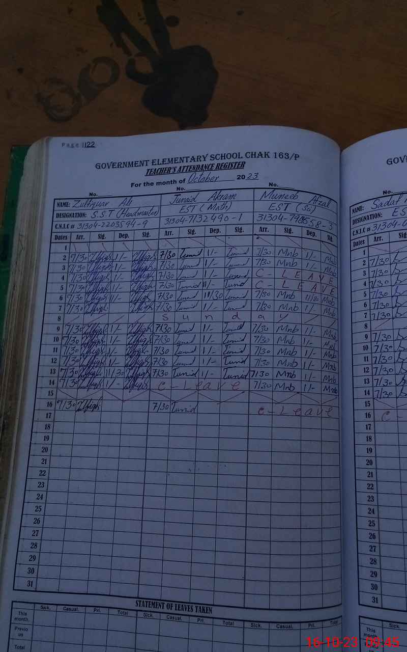 | CNIC | Full Name | Designation | R/C | Absence during last cal. month |