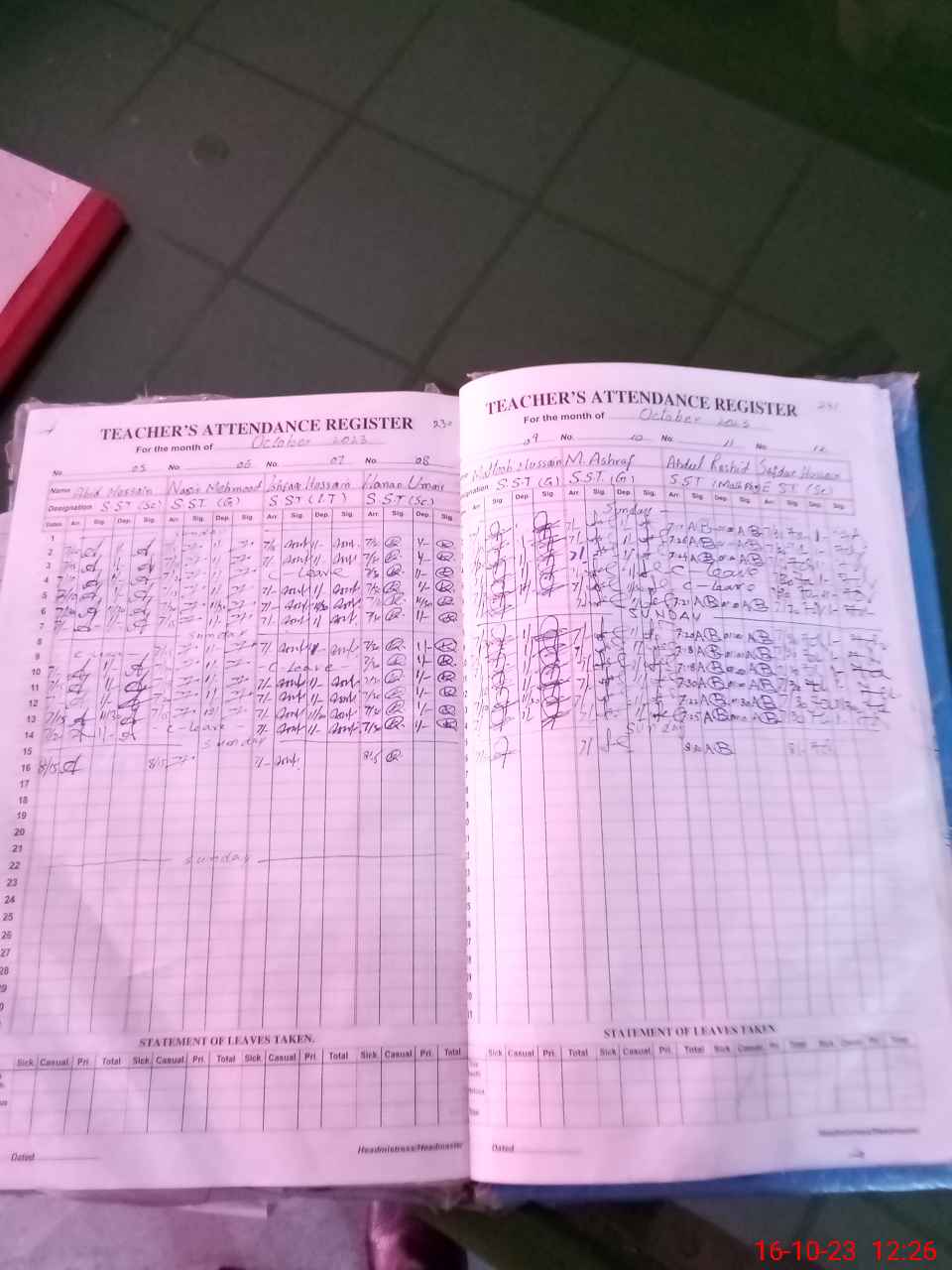 | Leave | Duty | Absent | Maternity | Medical | Ex- Pak |