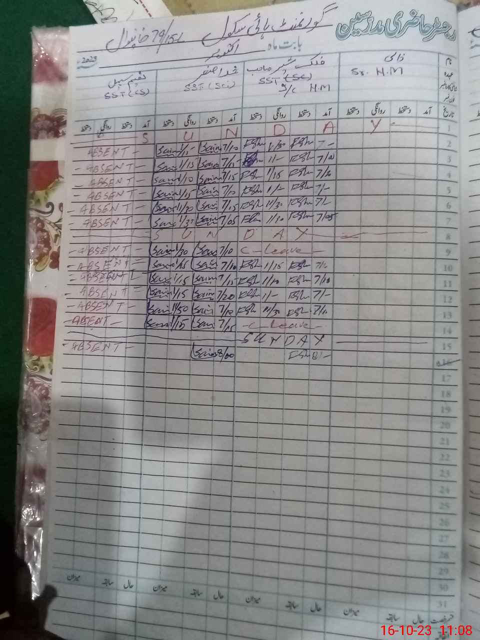 | 36**** | Na**** So**** | 1 | 0 | 0 | 30 | 0 | 0 | 0 | 0 | 0 | 0 | Absent (Un-Authorized) | |