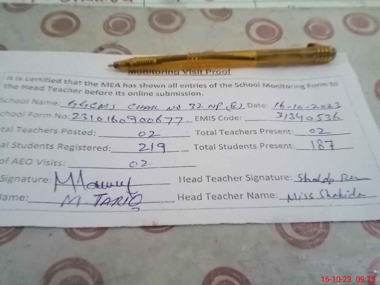 | EMIS Code: 31340536 | Name of School: GGCMS 32 NP SHARQI | |||