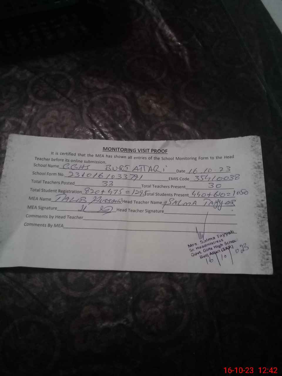| EMIS Code: 35410038 | Name of School: GGHS BURJ ATTARI | |||