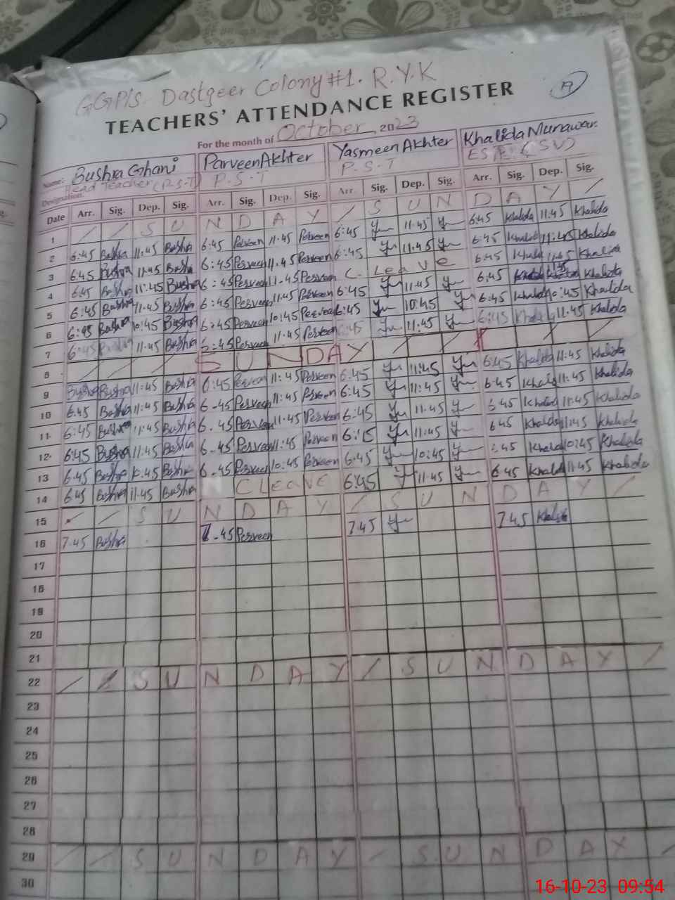 | District: RAHIMYAR KHAN | Tehsil: RAHIMYAR KHAN | Markaz: SADAR RYK - FEMALE | Level: Primary | |