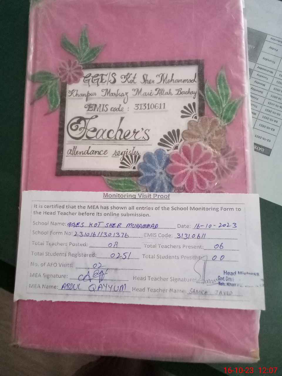 | EMIS Code: 31310611 | Name of School: GGES KOT SHER MOHAMMAD | |||