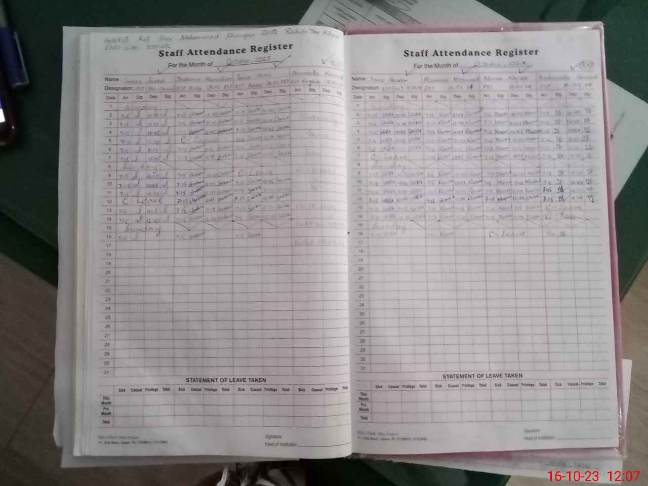 | 31**** | Za**** Su**** | SWEEPER | Regular | 0 | 0 | 30 | 0 | 0 | 0 | 0 | 0 | 0 | Absent (Un-Authorized) |