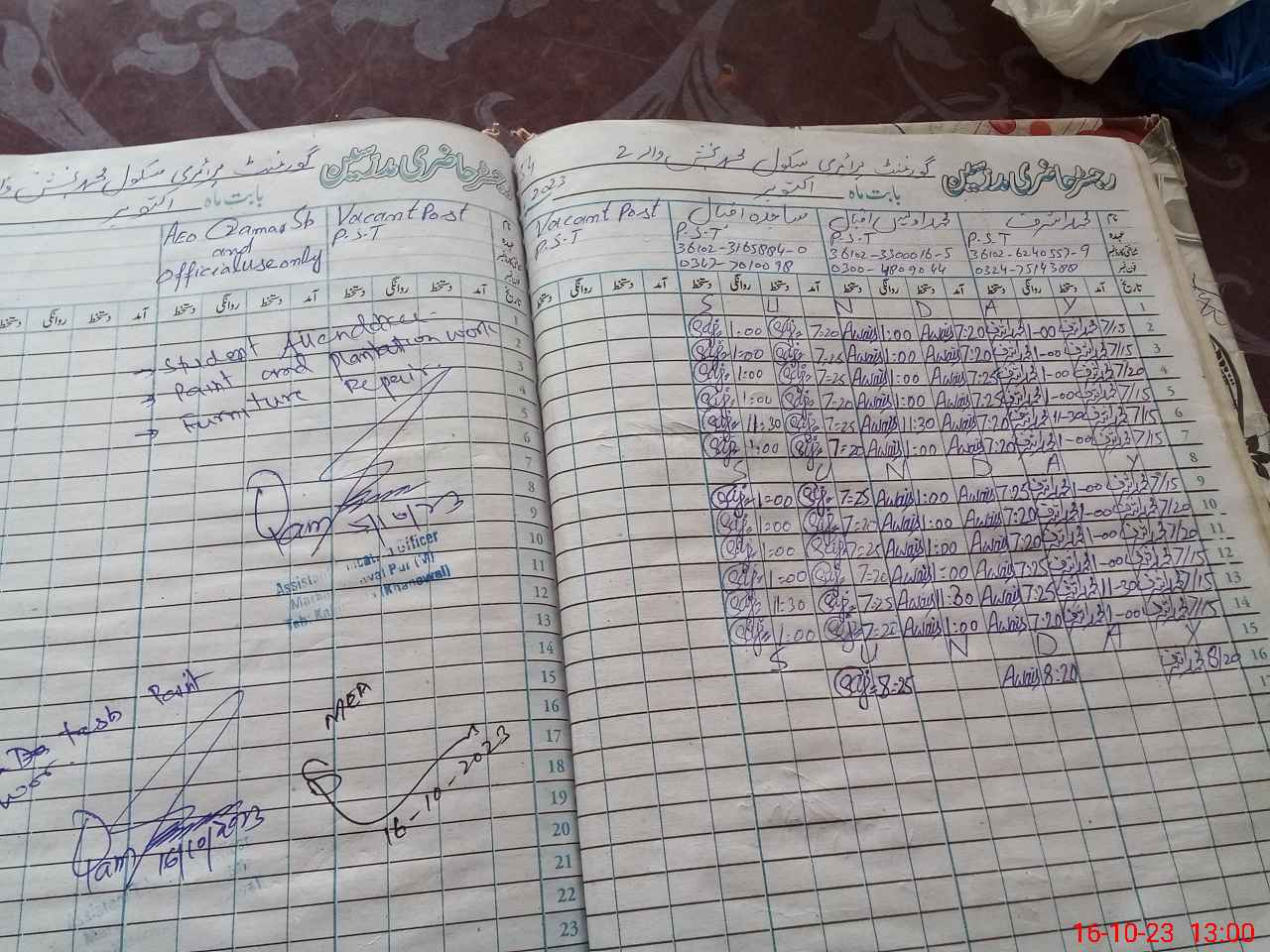 | Name: Mu**** Aw**** Iq**** Designation: (School Headmaster's/Headmistress's) PST Phone/Cell Number: 03**** |
