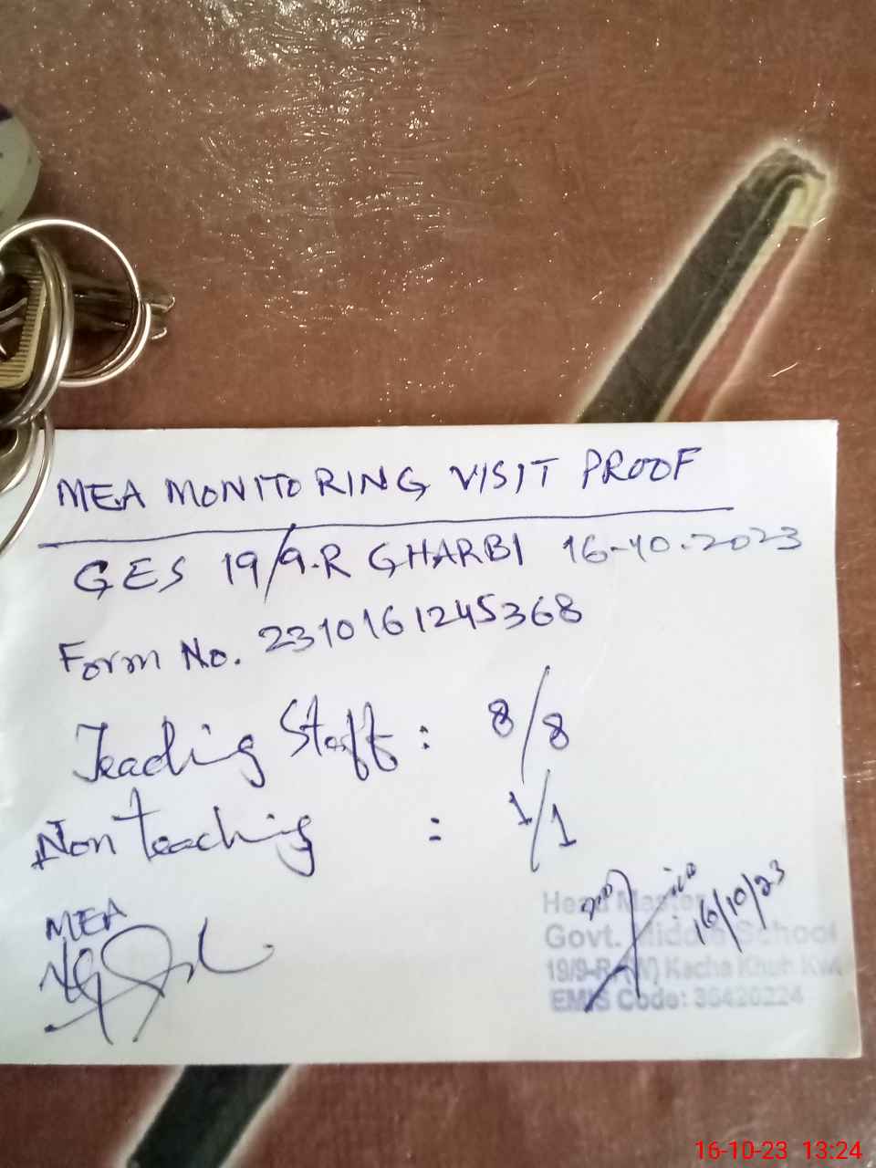 | Monitoring Date: 16-10-2023 | Start Time: 16-10-2023 12:37 PM | End Time: 16-10-2023 01:25 PM | Name of MEA: Kh**** Mu**** (S**** 05**** | |