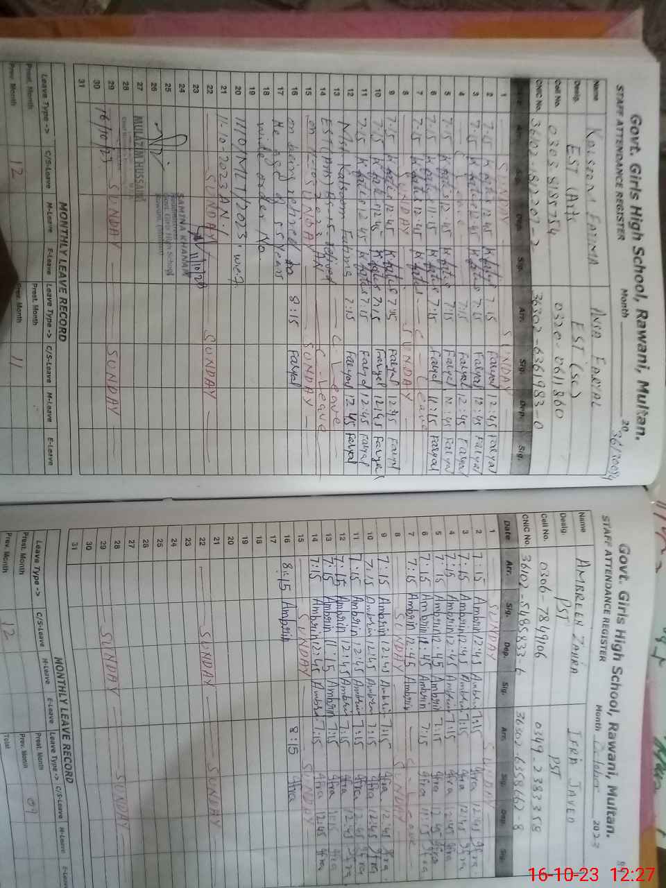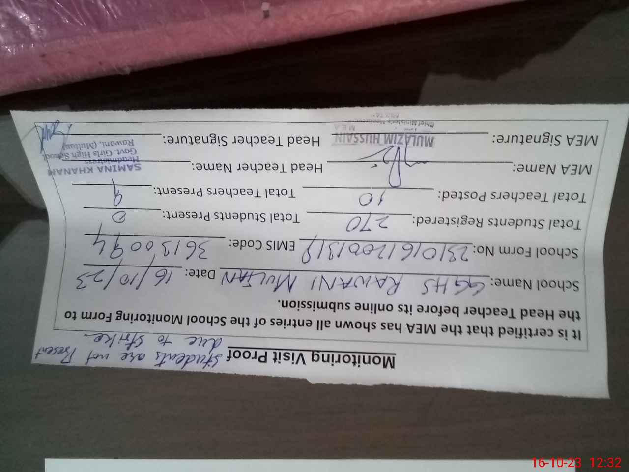 | Name: Ma**** Za**** Designation: (School Headmaster's/Headmistress's) HEADMISTRESS Phone/Cell Number: 03**** |