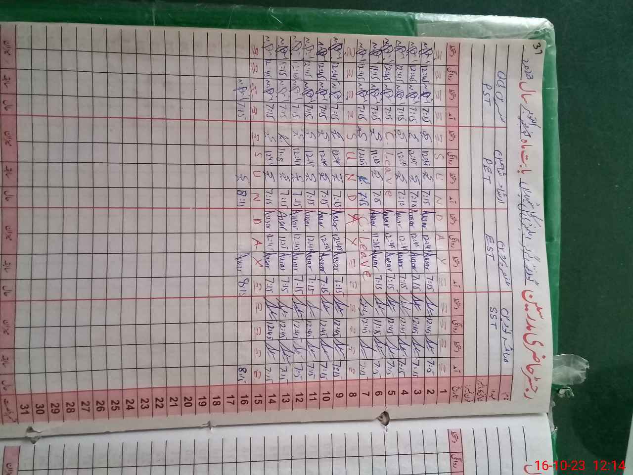 | Leave | Duty | Absent | Maternity | Medical | Ex- Pak |