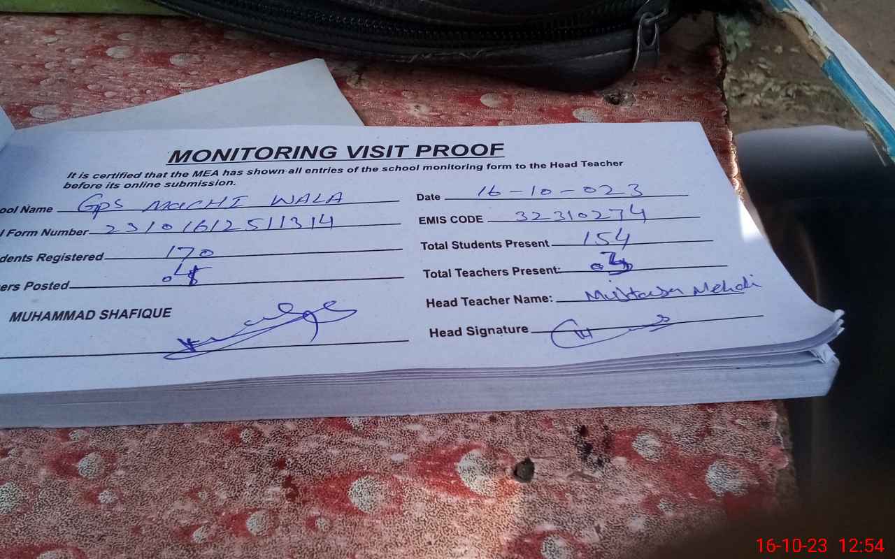 | EMIS Code: 32310274 | Name of School: GPS MACHI WALA | |||