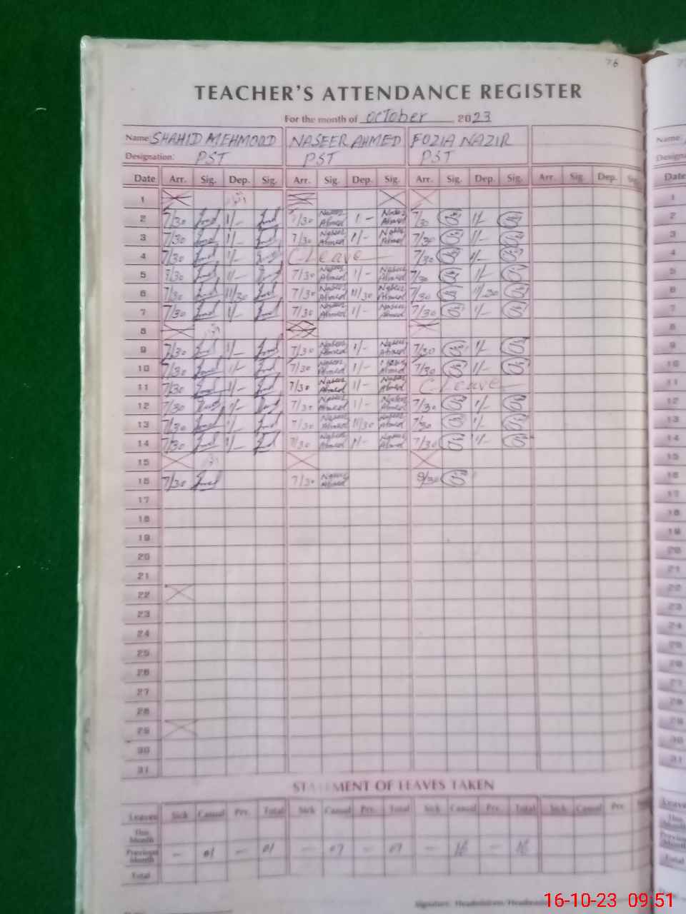 | Leave | Duty | Absent | Maternity | Medical | Ex- Pak |