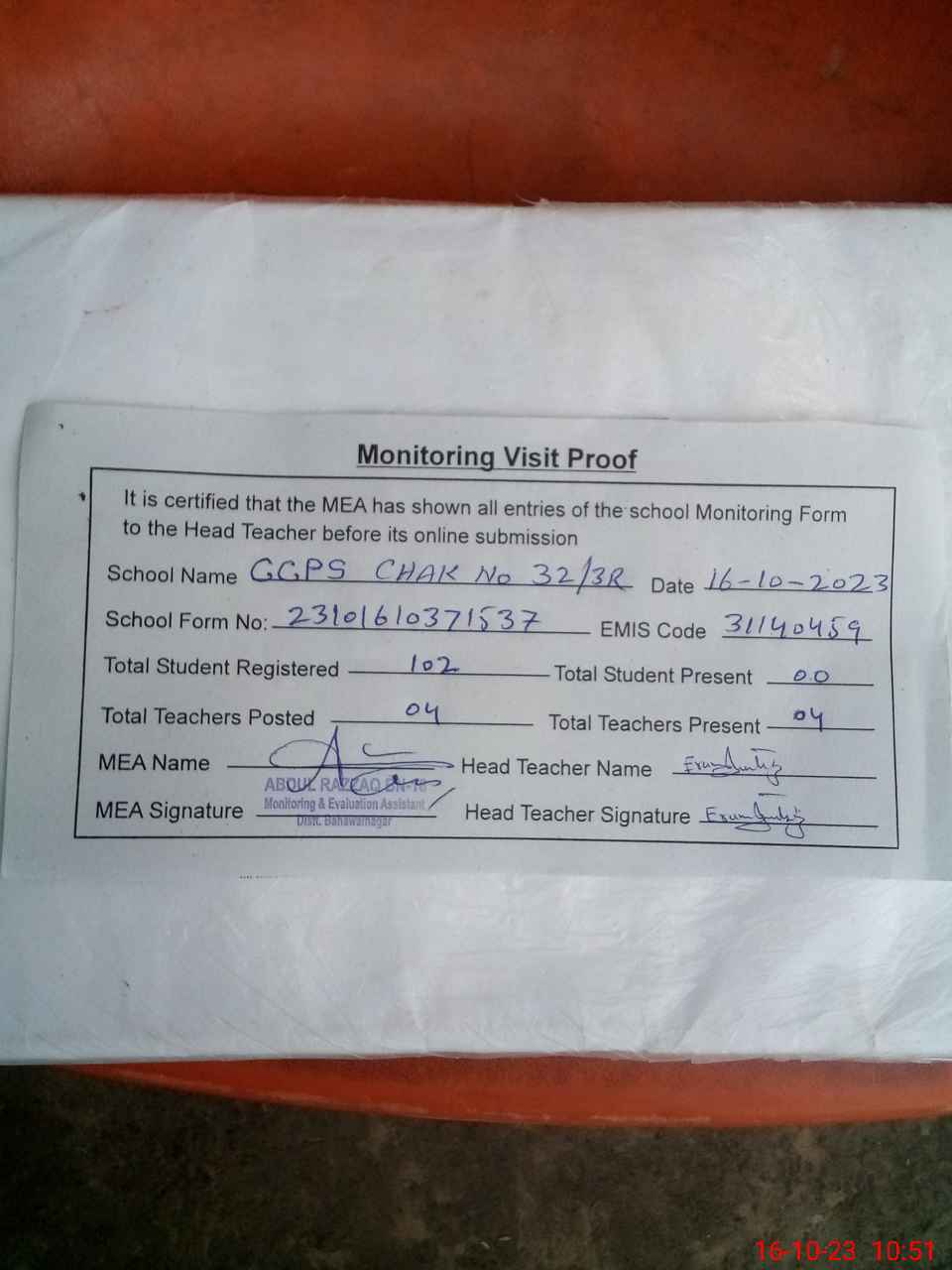 | EMIS Code: 31140459 | Name of School: GGPS CHAK NO 32 3R | |||