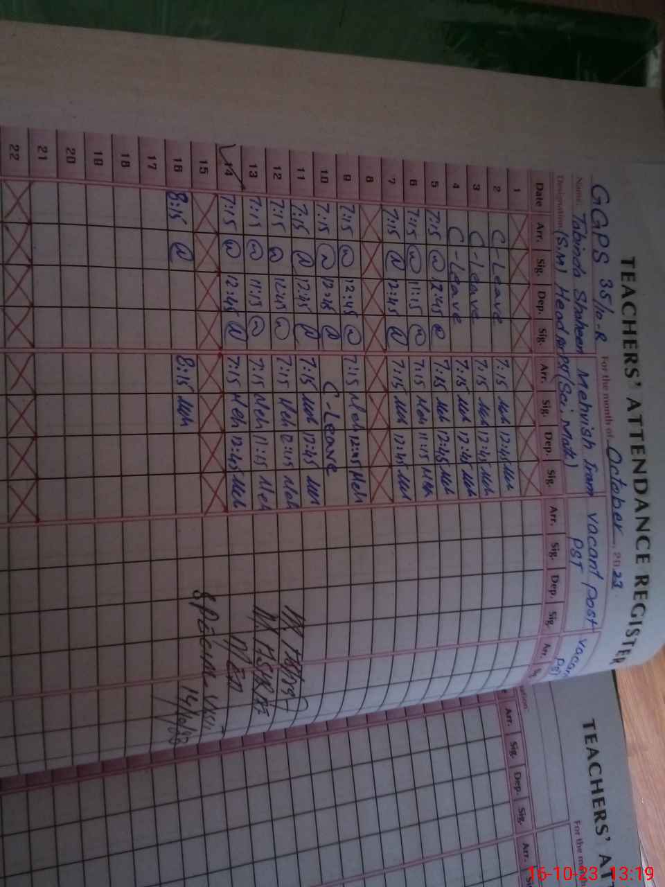| Name: Me**** Ir**** Designation: (School Headmaster's/Headmistress's) PST Phone/Cell Number: 03**** |