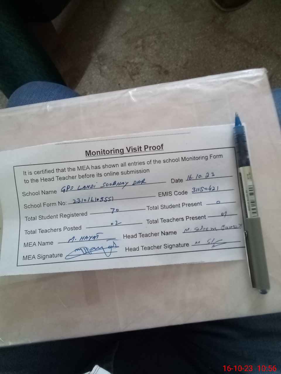 | EMIS Code: 31150421 | Name of School: GPS LANDI SOOBHAY DAR | |||