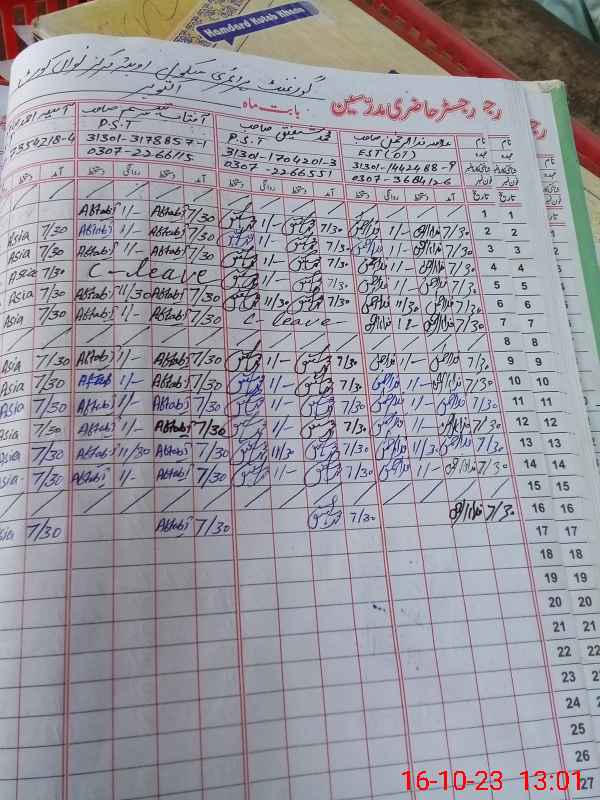 | Name: Ha**** Fi**** UrRa**** Designation: (School Headmaster's/Headmistress's) EST OT Phone/Cell Number: 03**** |