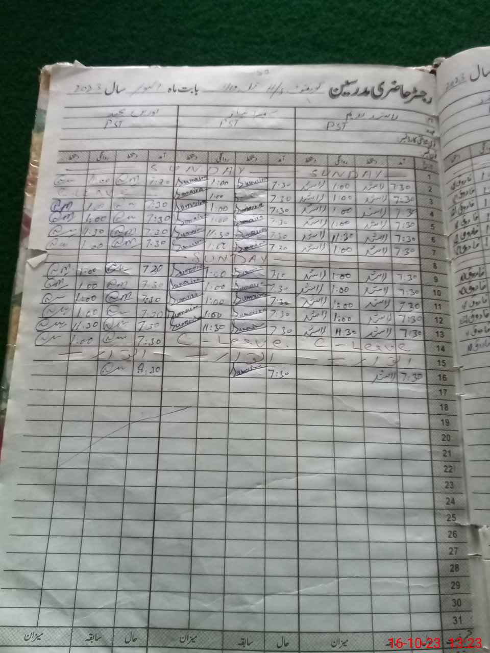 | CNIC | Full Name | Designation | R/C | Absence During Last Calender Month |