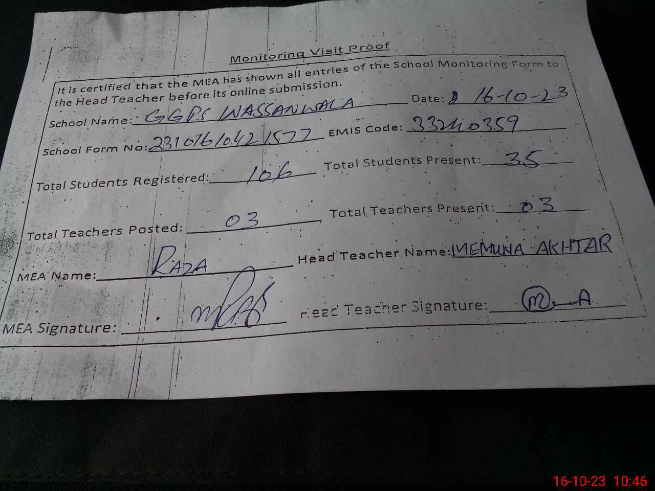 | EMIS Code: 33240359 | Name of School: GGPS WASSAN WALA | |||