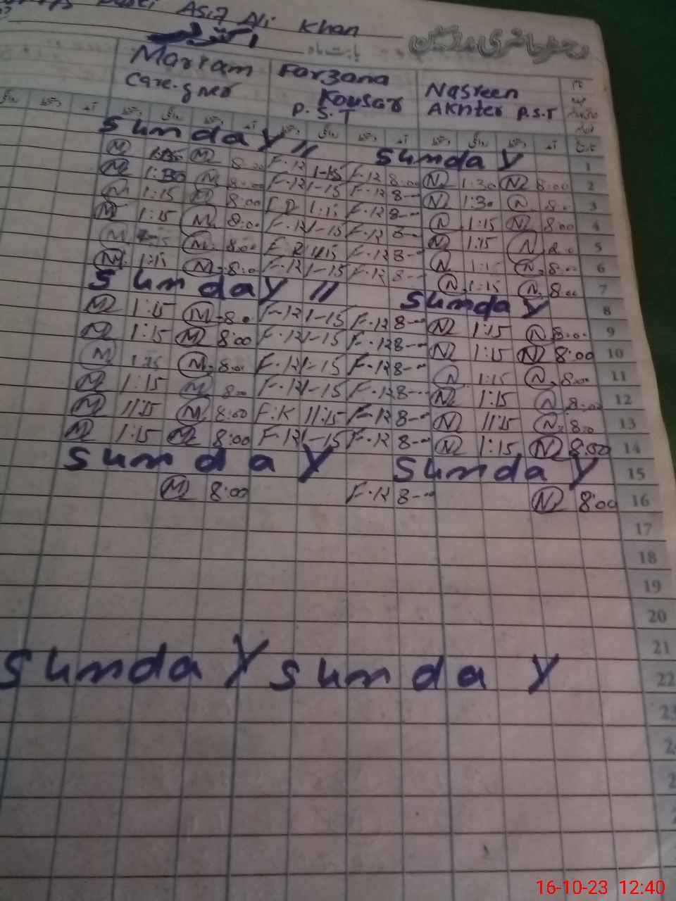| CNIC | Full Name | Designation | R/C | Absence During Last Calender Month |
