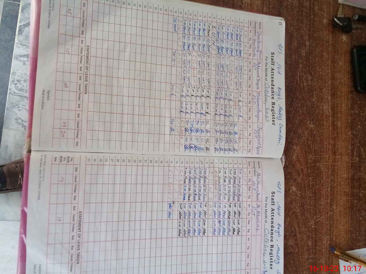 | Leave | Duty | Absent | Maternity | Medical | Ex- Pak |