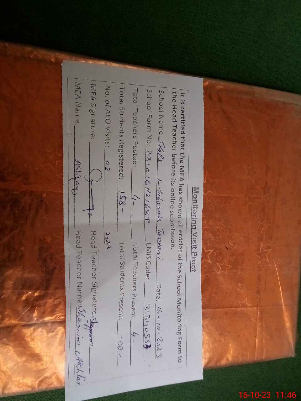 | EMIS Code: 31340553 | Name of School: GGPS MUBARAK TANWERI | |||