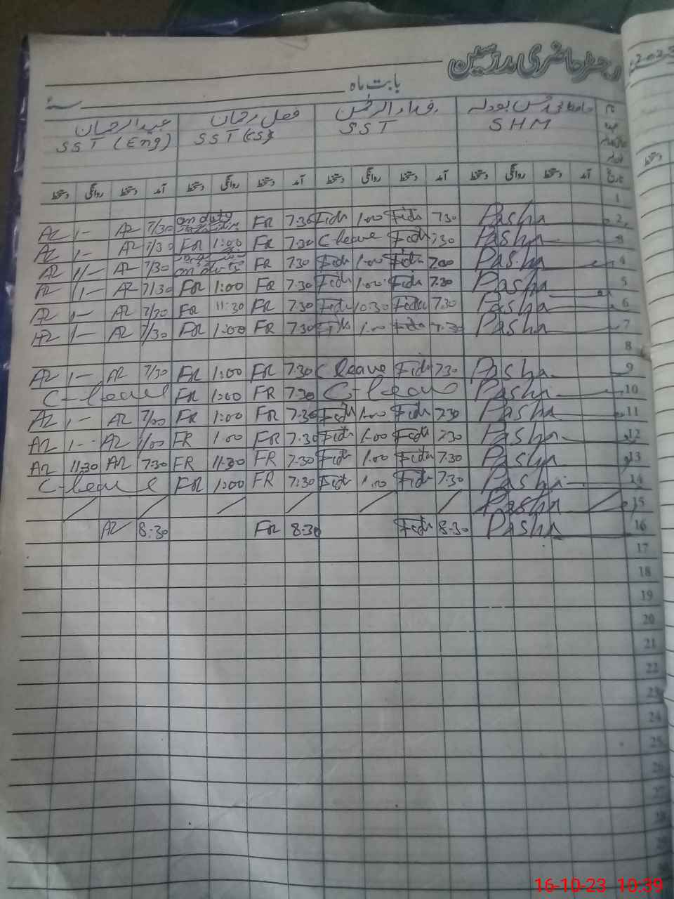 | Leave | Duty | Absent | Maternity | Medical | Ex- Pak |